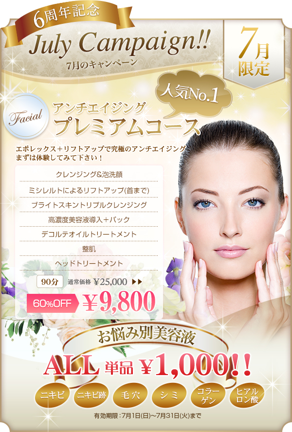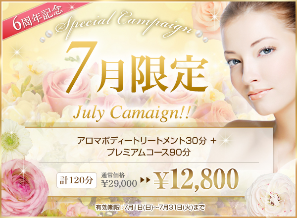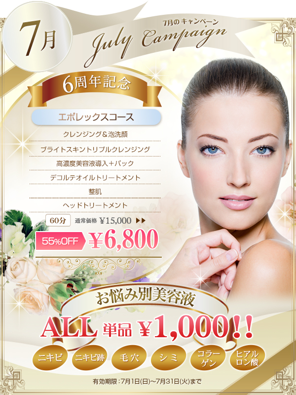 ★祝★6周年記念!!!☆7月のキャンペーン☆/広尾・恵比寿でアンチエイジングからO脚矯正まで♪フェイシャル&トータルビューティーはCielplendir~シエルプランディー~