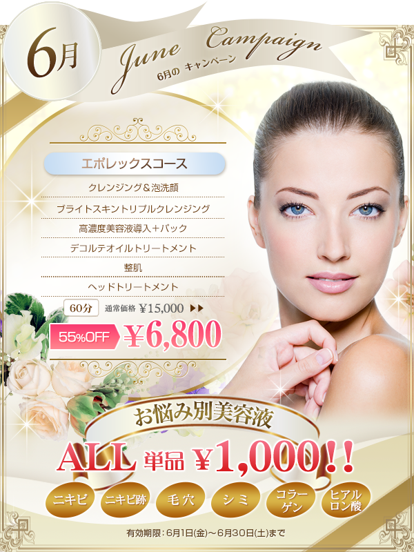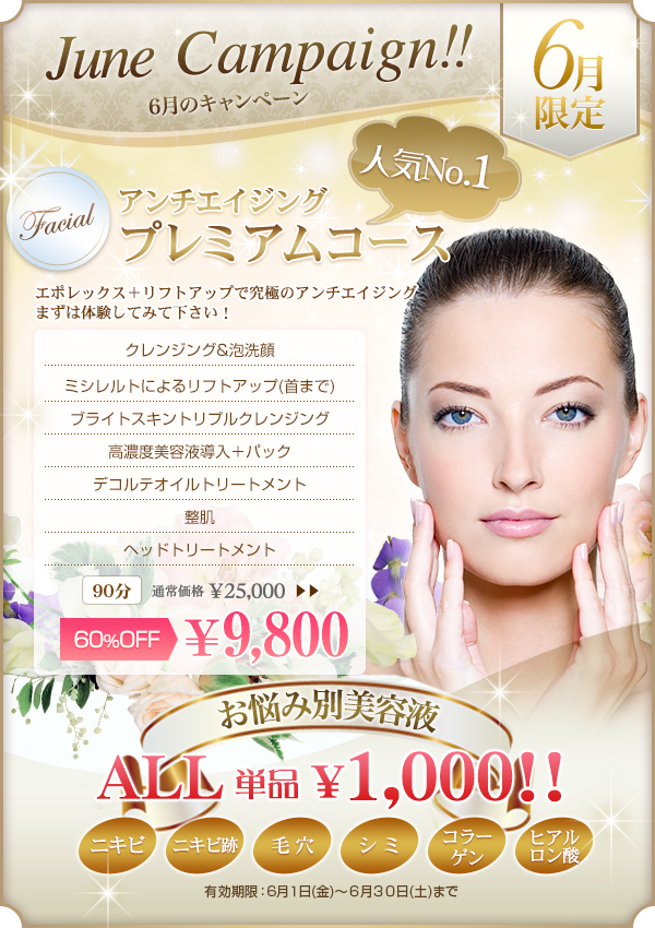 ☆6月のキャンペーン☆/広尾・恵比寿でアンチエイジングからO脚矯正まで♪フェイシャル&トータルビューティーはCielplendir~シエルプランディー~