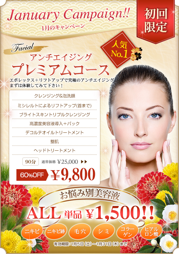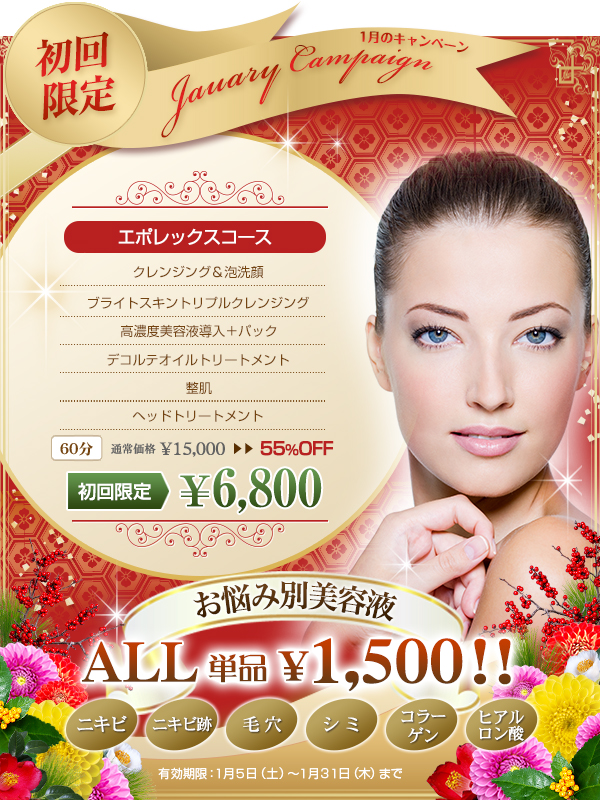 1月のキャンペーン☆/広尾・恵比寿でアンチエイジングからO脚矯正まで♪フェイシャル&トータルビューティーはCielplendir~シエルプランディー~
