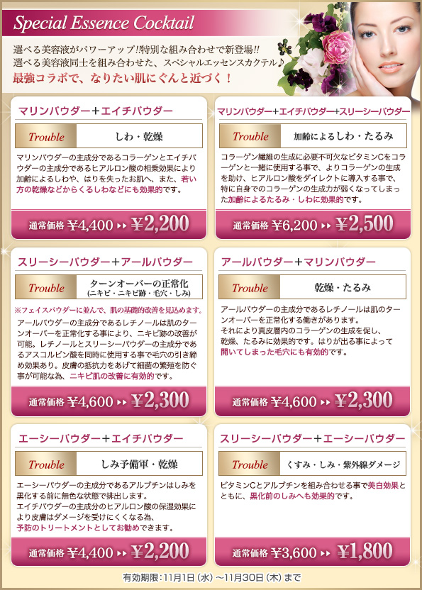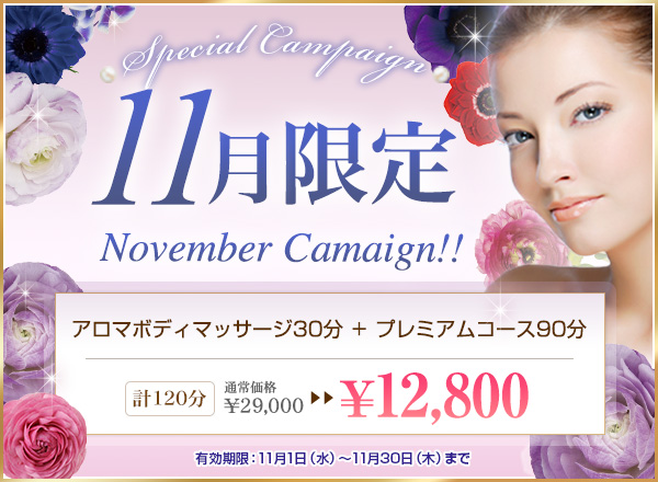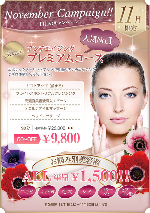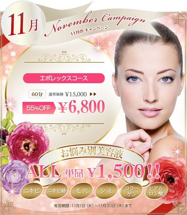 11月のキャンペーン☆/エポレックス専門フェイシャルエステサロンは恵比寿・広尾のCielplendir~シエルプランディー