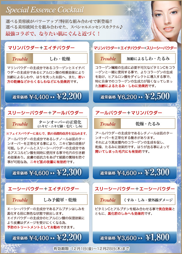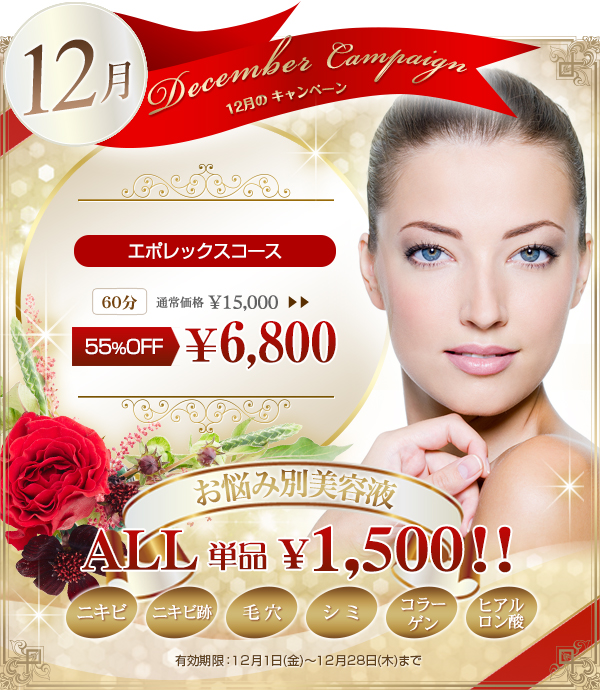 12月のキャンペーン☆/エポレックス専門フェイシャルエステサロンは恵比寿・広尾のCielplendir~シエルプランディー