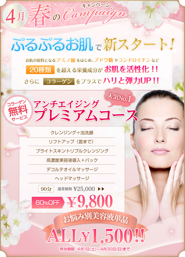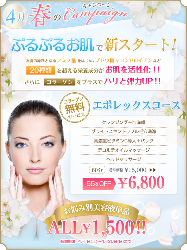 4月のキャンペーン☆/エポレックス専門フェイシャルエステサロンは恵比寿・広尾のCielplendir~シエルプランディー~