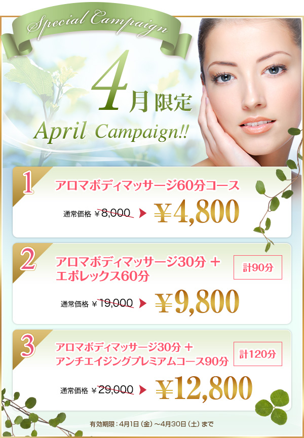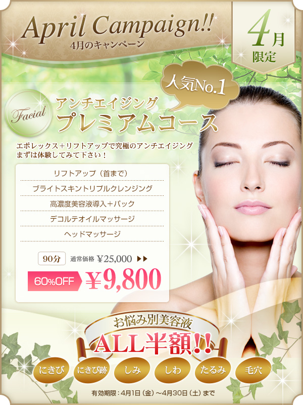 4月のキャンペーン/恵比寿・広尾・代官山のフェイシャルエステサロン Cielpiendir~シエルプランディー~