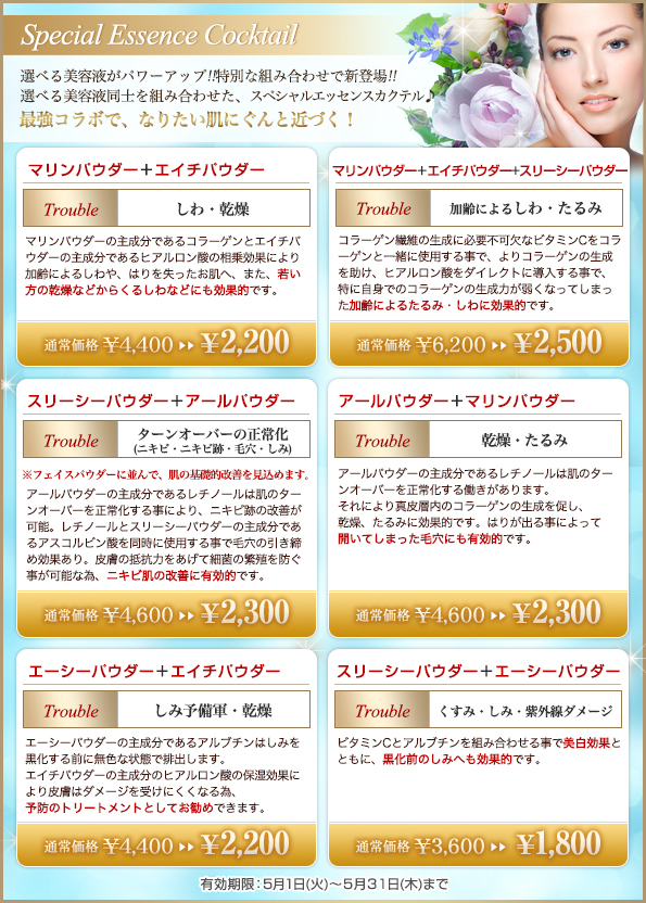 店頭にて、この画面を見せて頂くと、美容液単品、スペシャルエッセンスカクテル