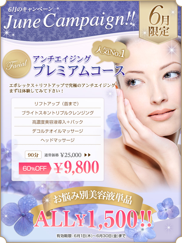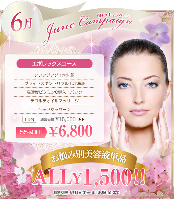 6月のキャンペーン☆/エポレックス専門フェイシャルエステサロンは恵比寿・広尾のCielplendir~シエルプランディー~