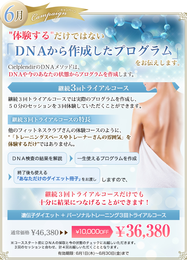 遺伝子検査+パーソナルトレーニングトライアルコース3回セットもお得!!