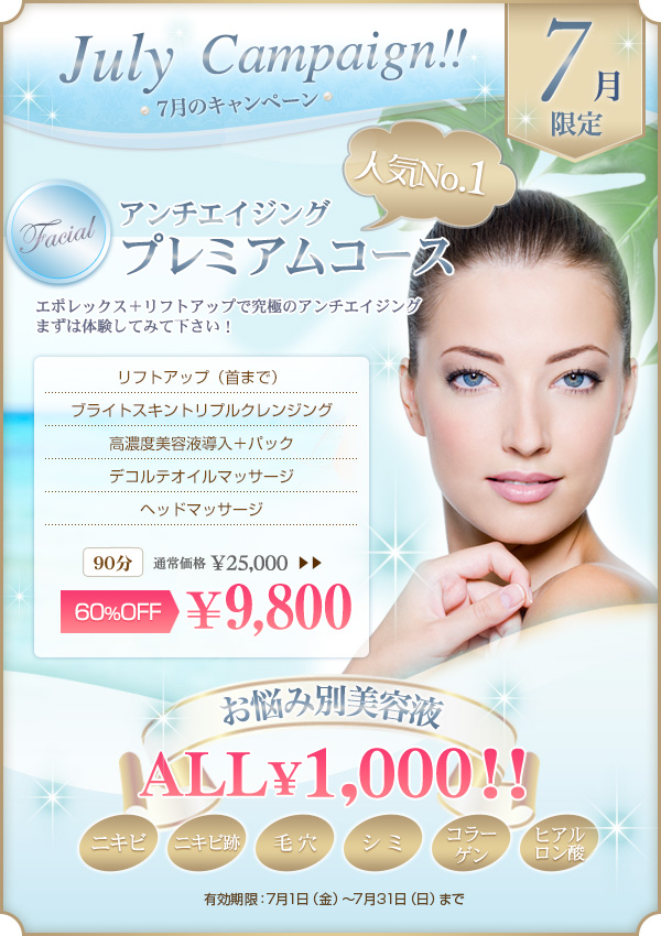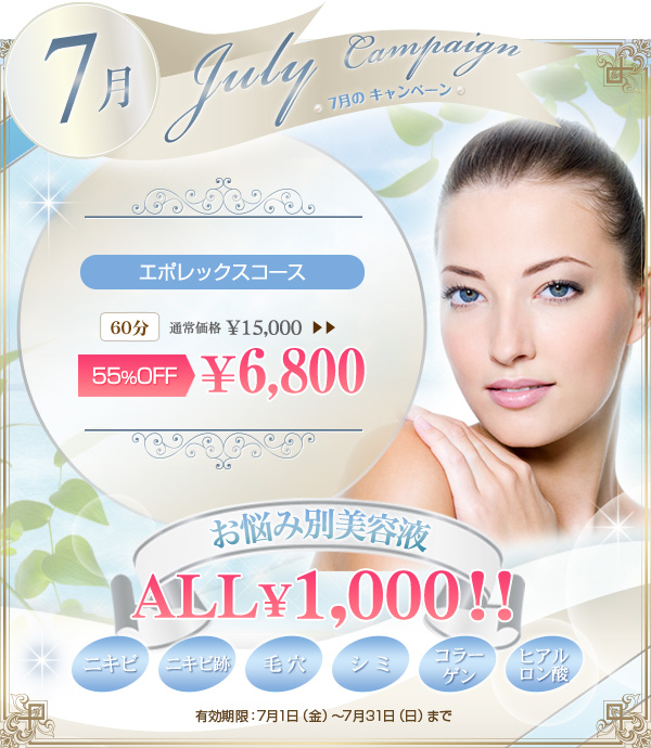 7月のキャンペーン☆/恵比寿・広尾のエポレックス専門フェイシャルエステ・Cielplendir~シエルプランディー~