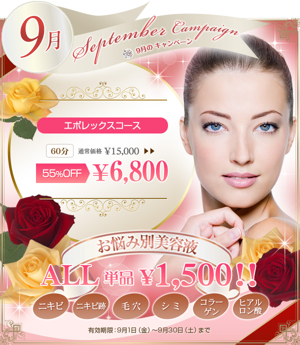 9月のキャンペーン☆/エポレックス専門フェイシャルエステサロンは恵比寿・広尾のCielplendir~シエルプランディー