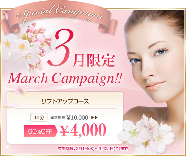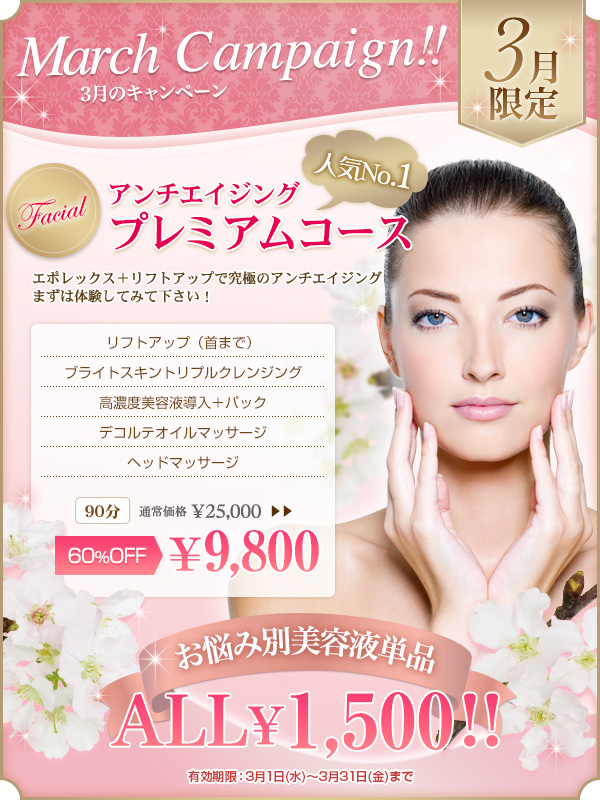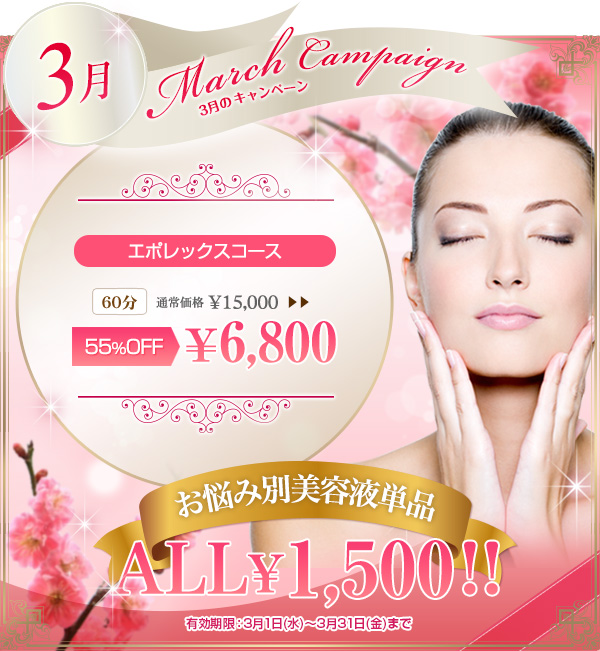 3月のキャンペーン☆/エポレックス専門フェイシャルエステサロンは恵比寿・広尾のCielplendir~シエルプランディー~
